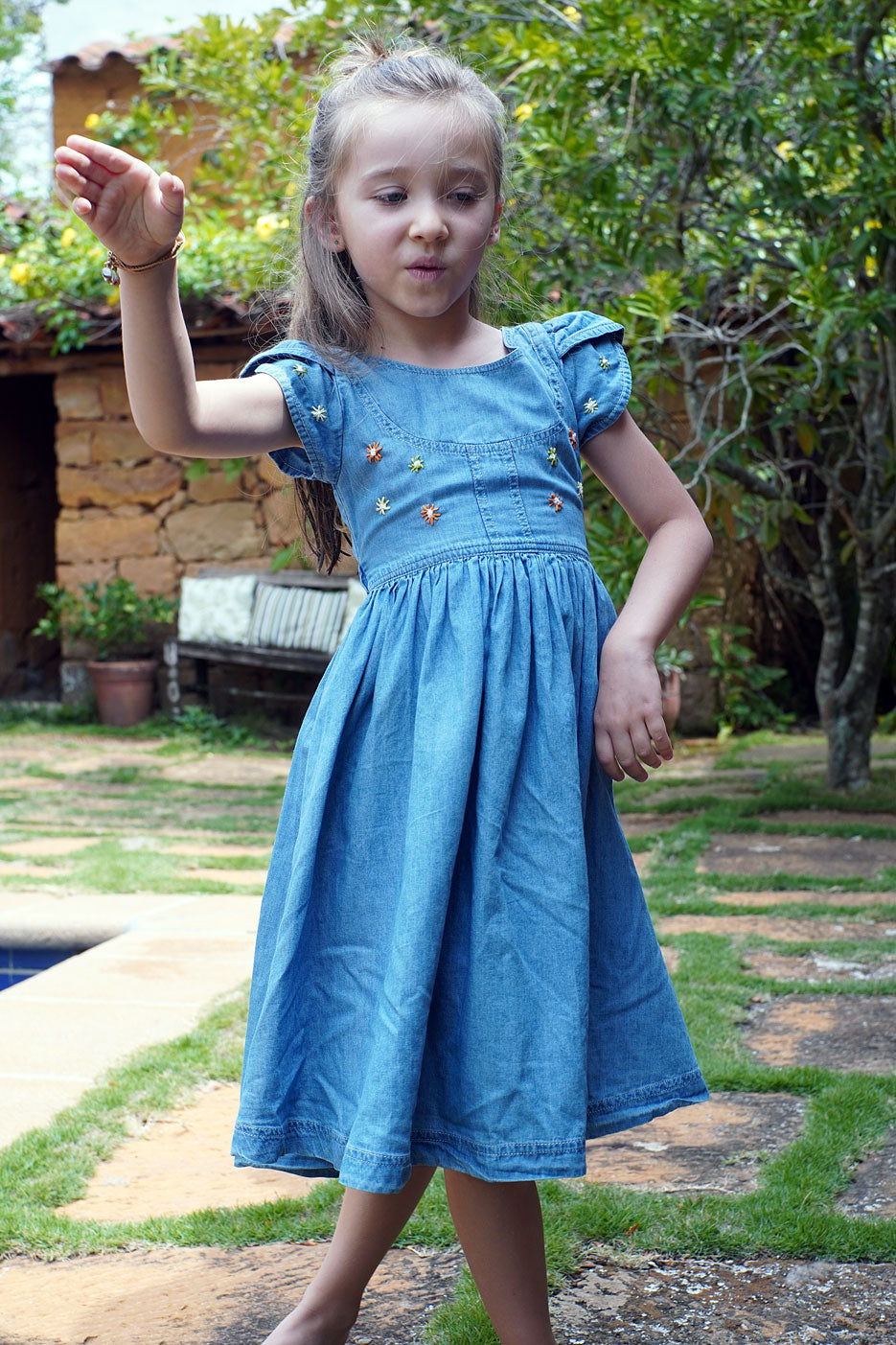 Este vestido camisero largo, confeccionado en chambray 100% algodón, es perfecto para las pequeñas que quieren un look fresco y divertido