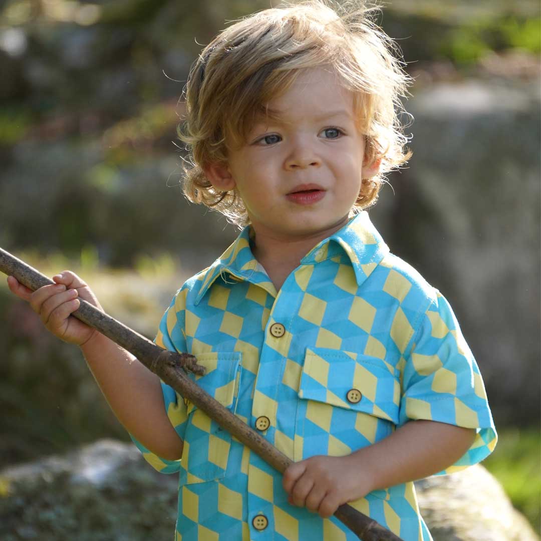 Camisa de manga larga en algodón beige con un toque moderno y versátil gracias a su cuello y botones. Ligera y fresca, permite total libertad de movimiento para acompañar a tu pequeño en cada descubrimiento con elegancia y confort.