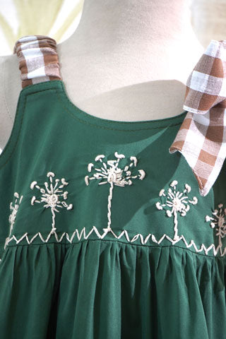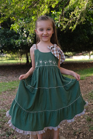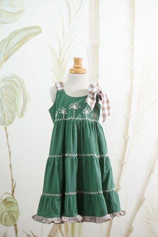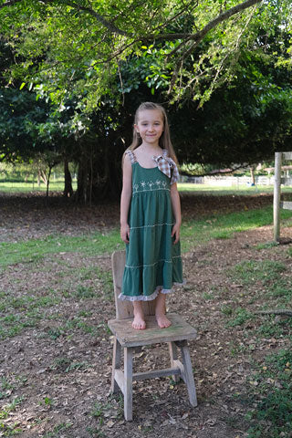 dress! Made from soft green rayon, this long sleeveless dress is an ode to nature and beauty. Its hand-embroidered details with lots of love, the padded shoulders, and the romantic bow create an unforgettable look. Perfect for creating special moments full of joy!