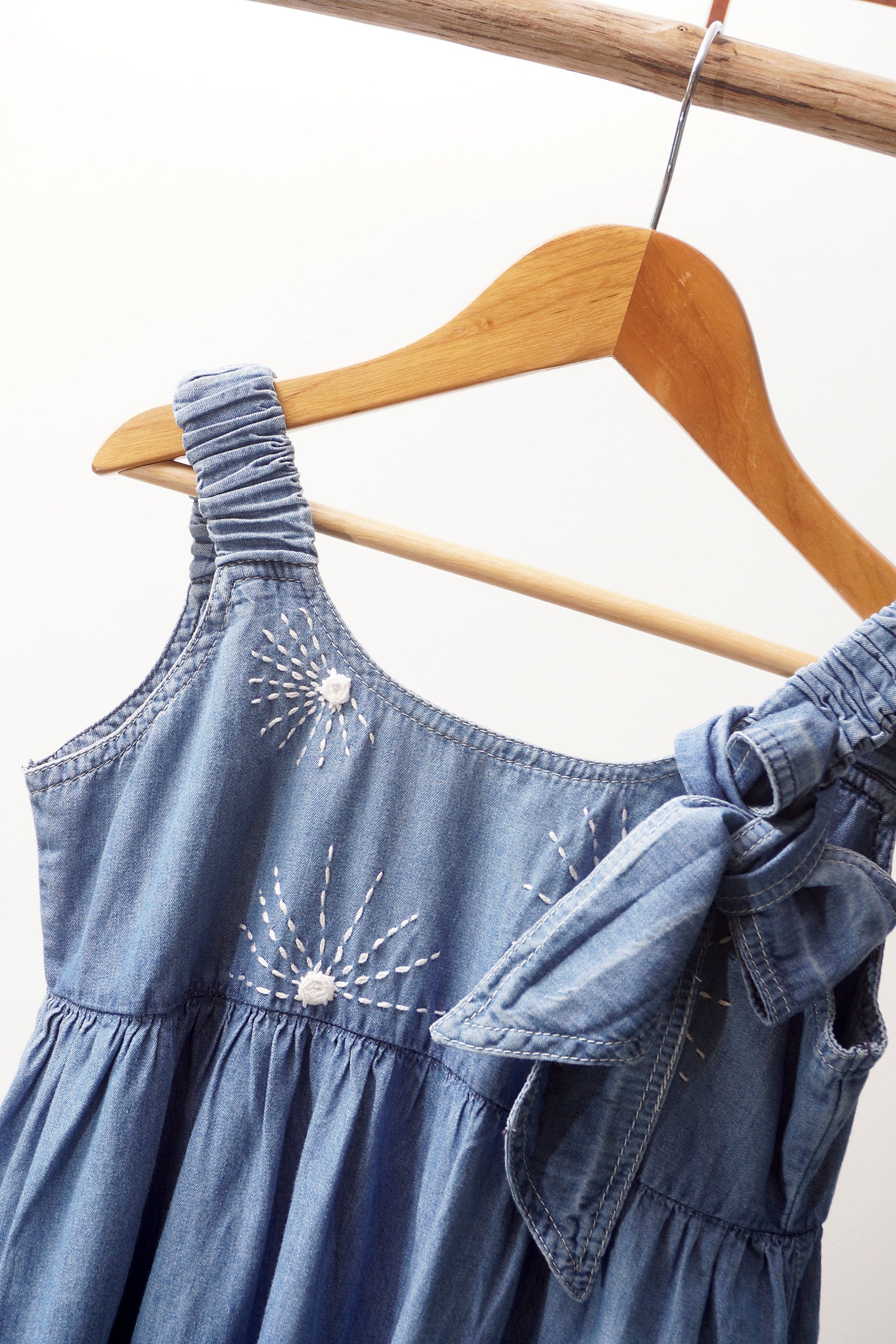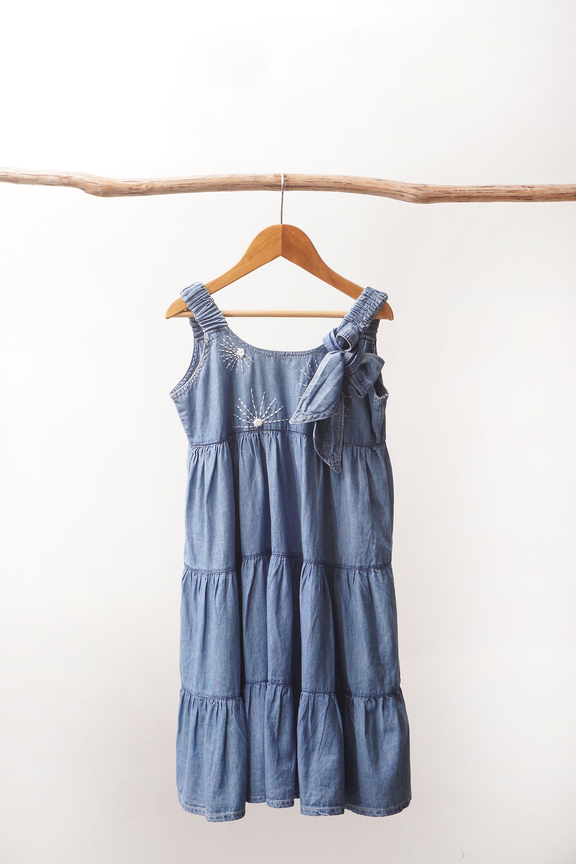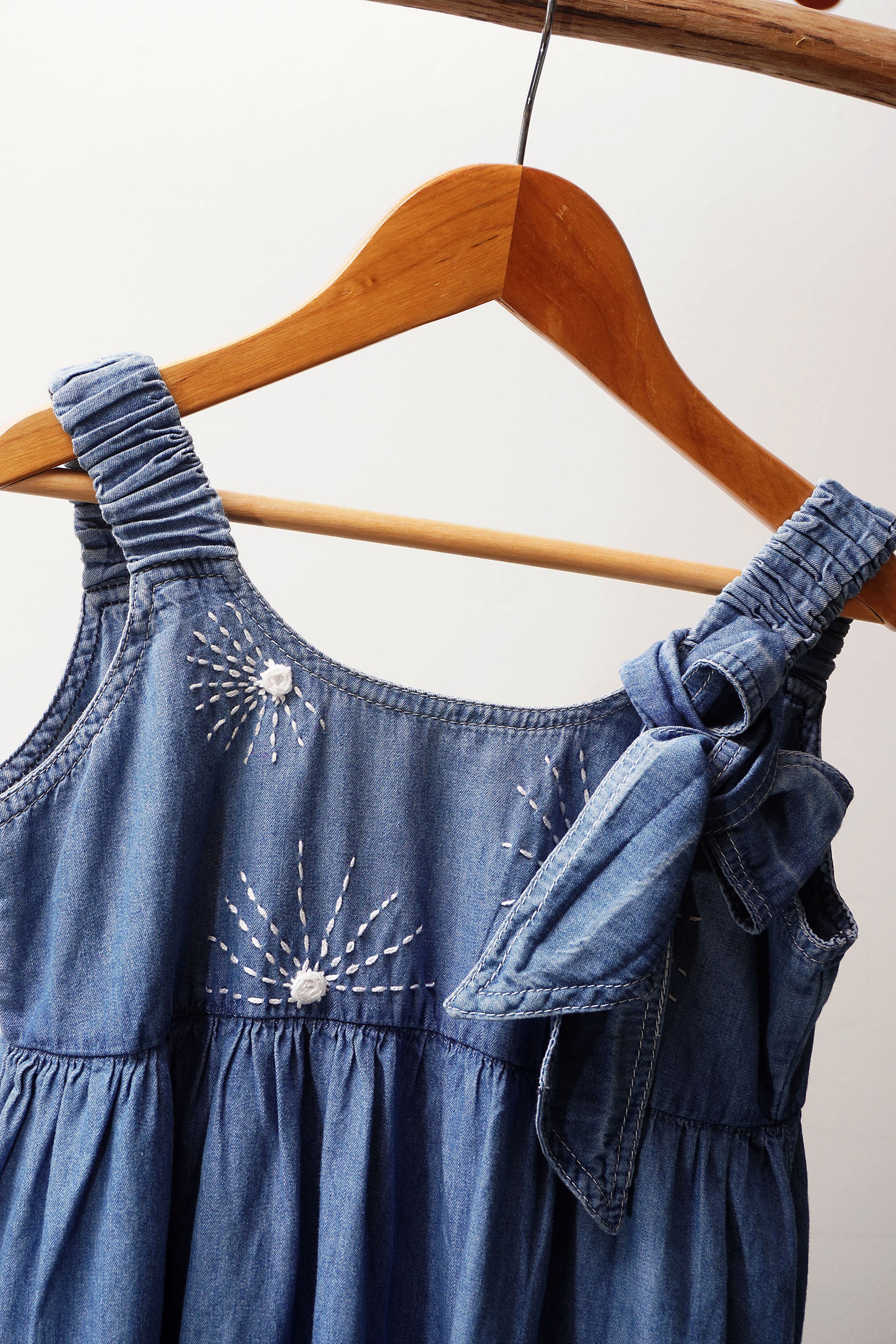 A sleeveless long dress Featuring our signature hand-embroidered details made with love, elastic shoulders, and a bow that creates an incredibly romantic touch.