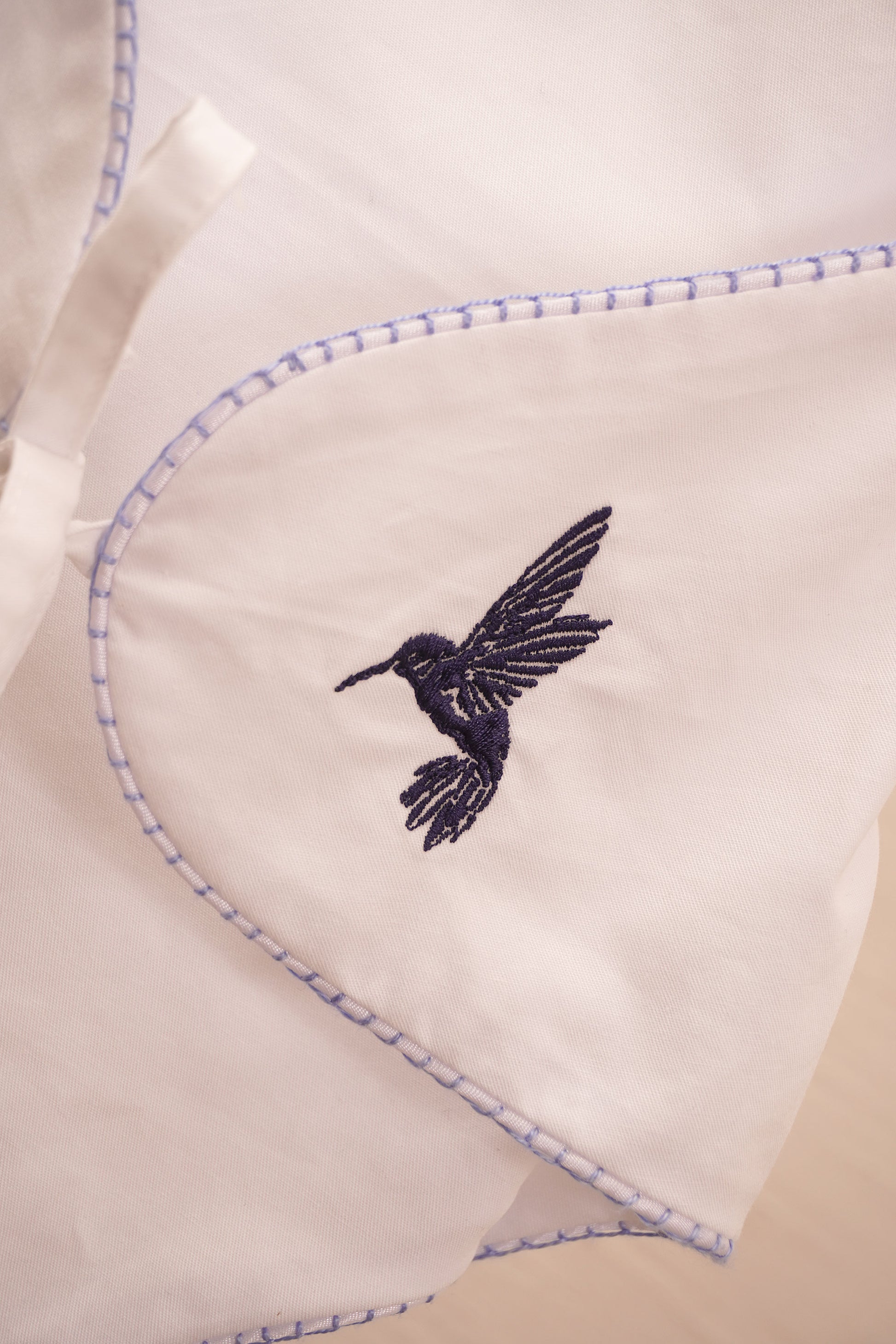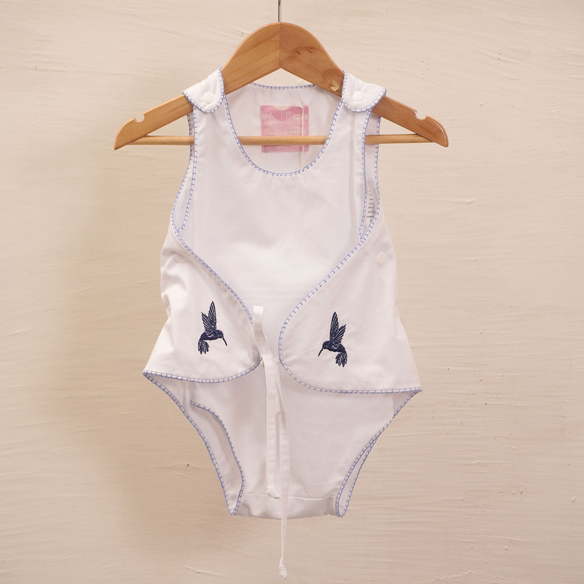 A gem of freshness and charm for your little one. Our 100% cotton poplin onesie features a vibrant hummingbird flight print. With adjustable straps for a playful and practical touch, it's perfect for playtime, outings, or enjoying summer in style. Soft, comfy, and made with so much love, your child will always shine brightly!
