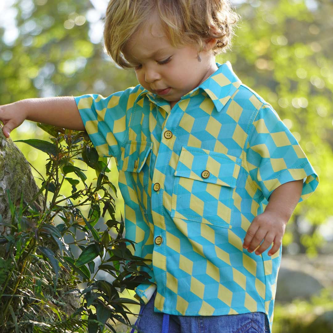 Camisa de manga larga en algodón beige con un toque moderno y versátil gracias a su cuello y botones. Ligera y fresca, permite total libertad de movimiento para acompañar a tu pequeño en cada descubrimiento con elegancia y confort.