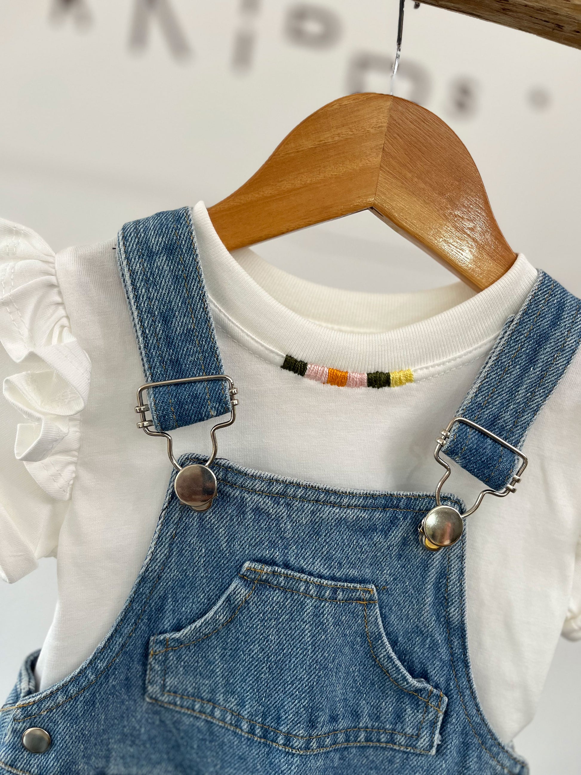 Overall en jean 100% algodón con correas ajustables en los hombros. Un look muy tierno y un diseño muy funcional, perfecto para cualquier ocasión.