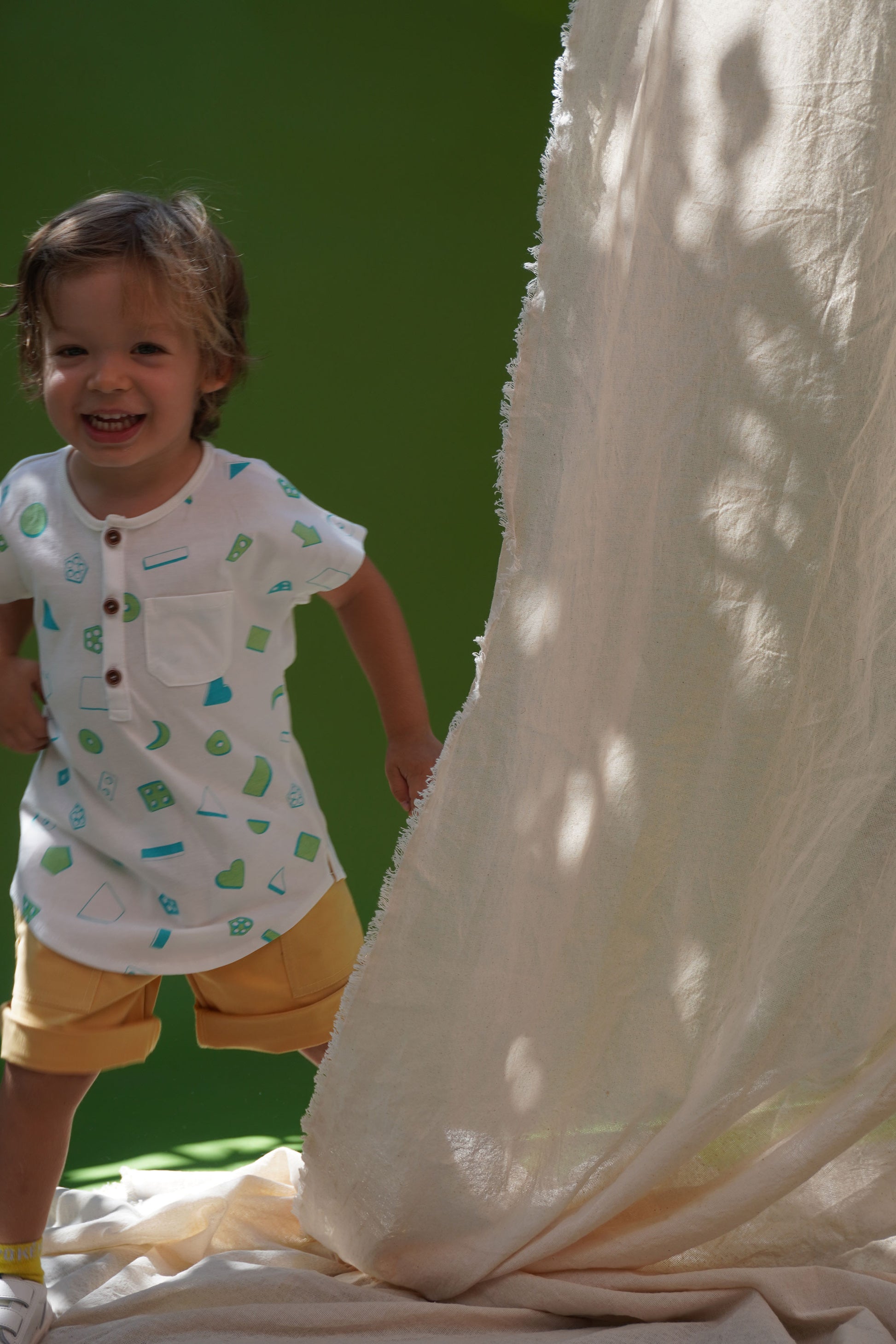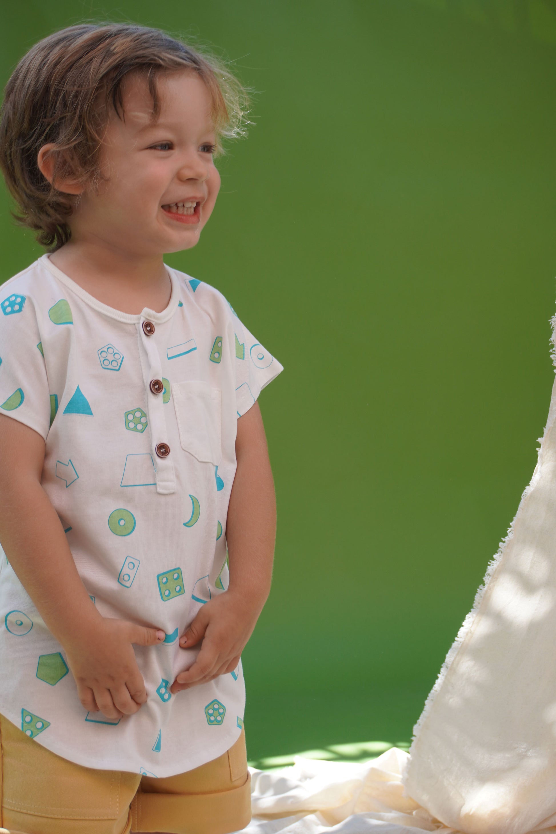 Un lienzo blanco para mil aventuras! 🎨 Nuestra camiseta de algodón es un básico lleno de imaginación, con un estampado de figuras al frente que invita a jugar y descubrir mundos nuevos. Ligera, cómoda y perfecta para los dÃas de sol, acompaña a los pequeños exploradores con un toque fresco y natural, ¡puro estilo Relicario Kidds para cada travesura!