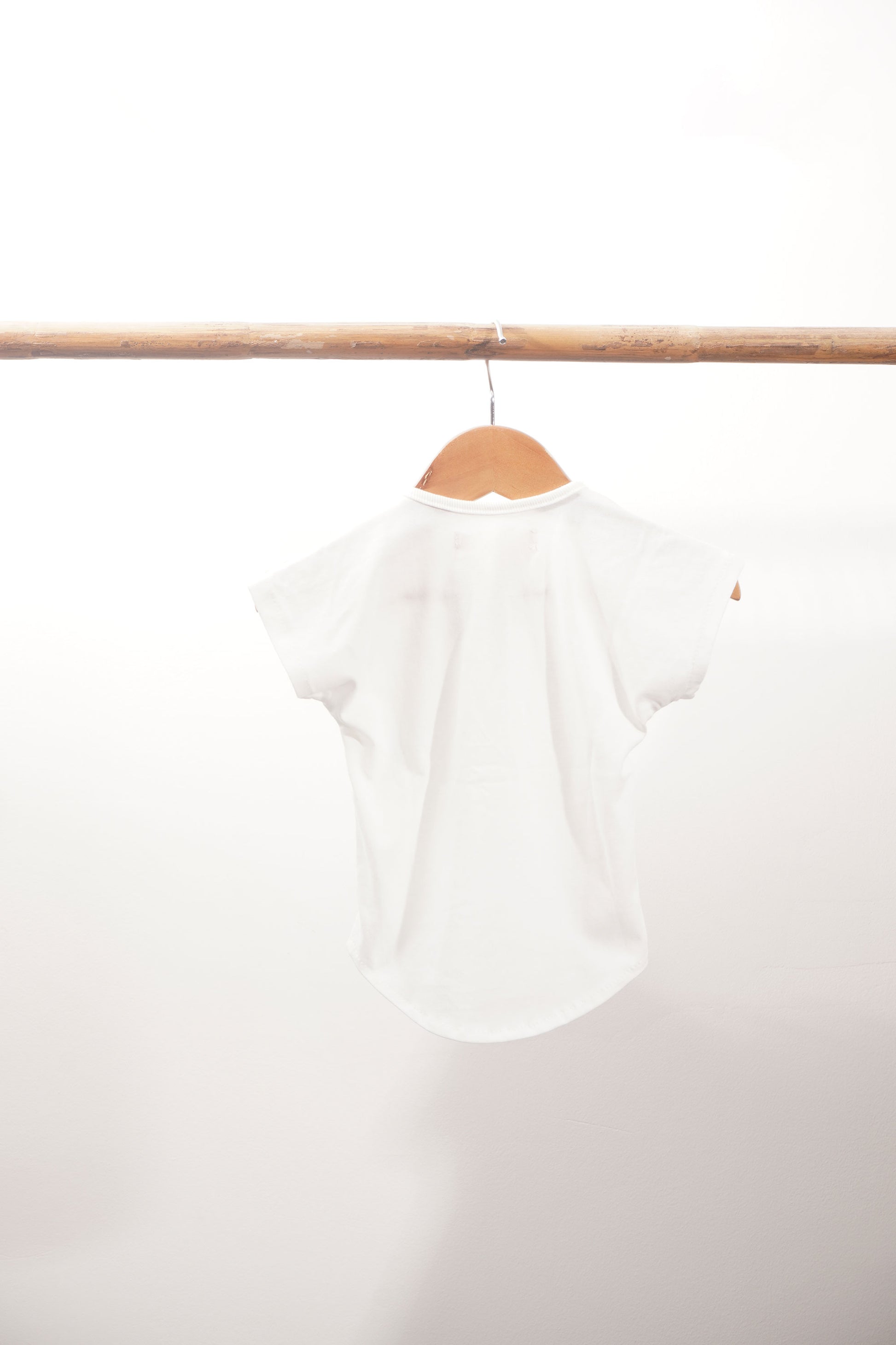 A white canvas for a thousand adventures! 🎨 Our cotton t-shirt is a basic bursting with imagination, featuring a figural print on the front that invites play and the discovery of new worlds. Light, comfy, and perfect for sunny days, it accompanies little explorers with a fresh and natural touch – pure Relicario Kidds style for every mischief!