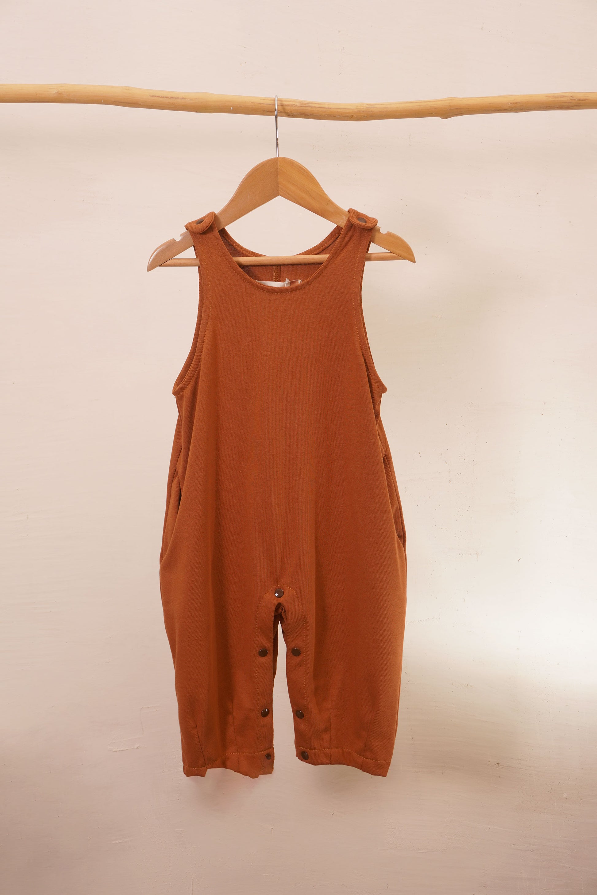 A renewed classic for little explorers! Our vibrant 100% cotton terracotta jumper is pure freedom. Its sleeveless design with shoulder buttons makes it super easy to wear, while its relaxed "harem" style cut invites play and adventure. Comfy, fresh, and with a free spirit!