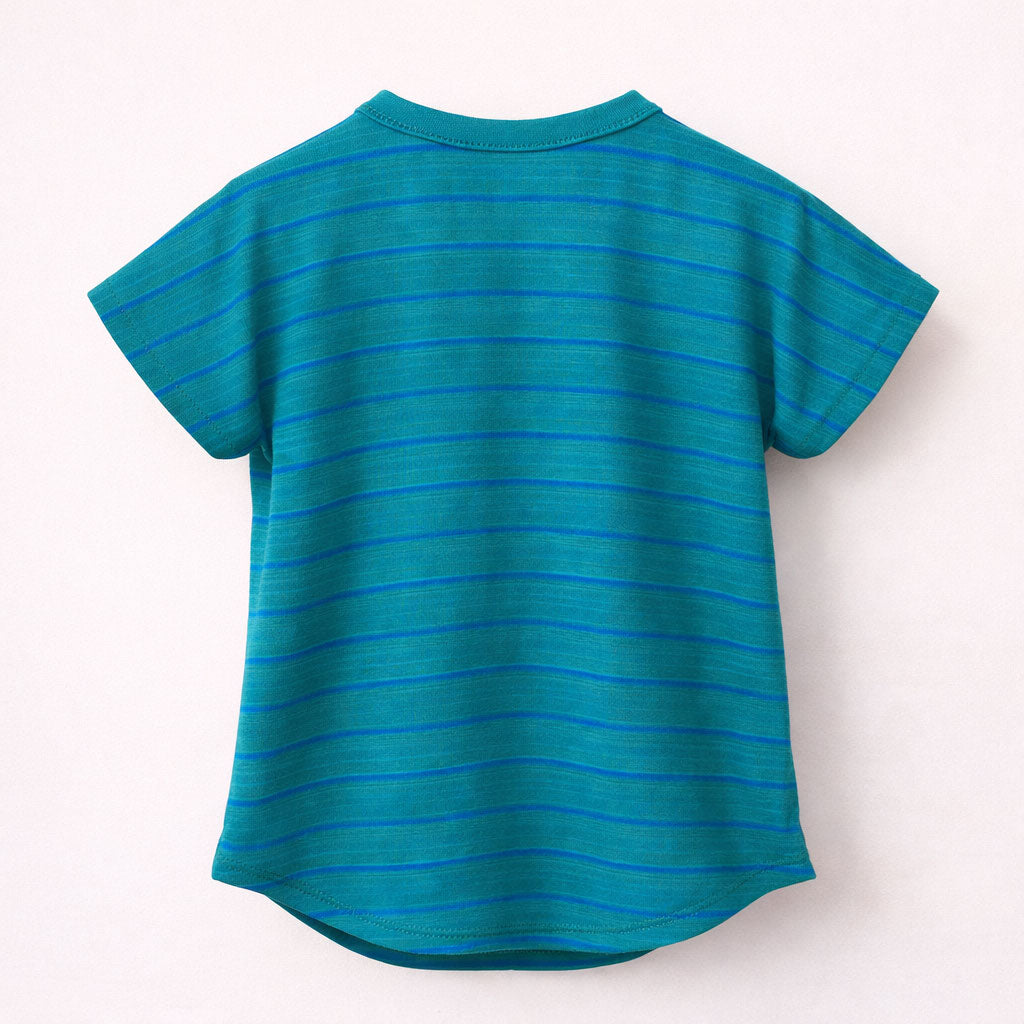 Crafted in 100% cotton, this tee blends simplicity with character. The green base with thin blue stripes and three front buttons create a natural, timeless look that’s easy to style. Its relaxed silhouette keeps up with the day in comfort and authenticity.
