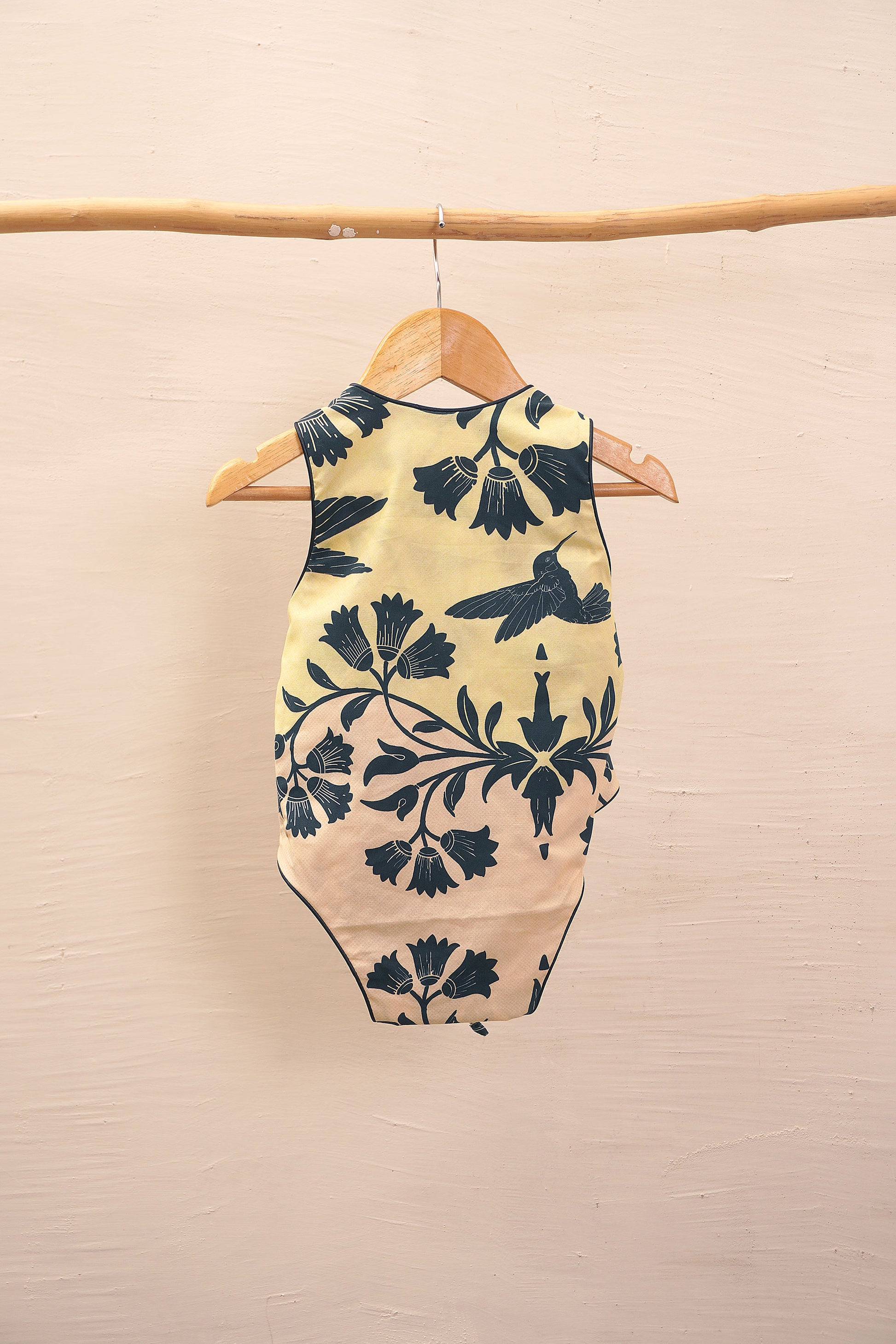 A cotton caress for the little ones! Our pure white 100% cotton poplin onesie is a dream. With delicate trims and hand-embroidered hummingbirds, every detail is a gem. Its cross-over design with a front tie is as practical as it is charming. Comfortable, fresh, and full of magic, it's perfect for shining on any special occasion! Handmade with love, because every stitch tells a story!