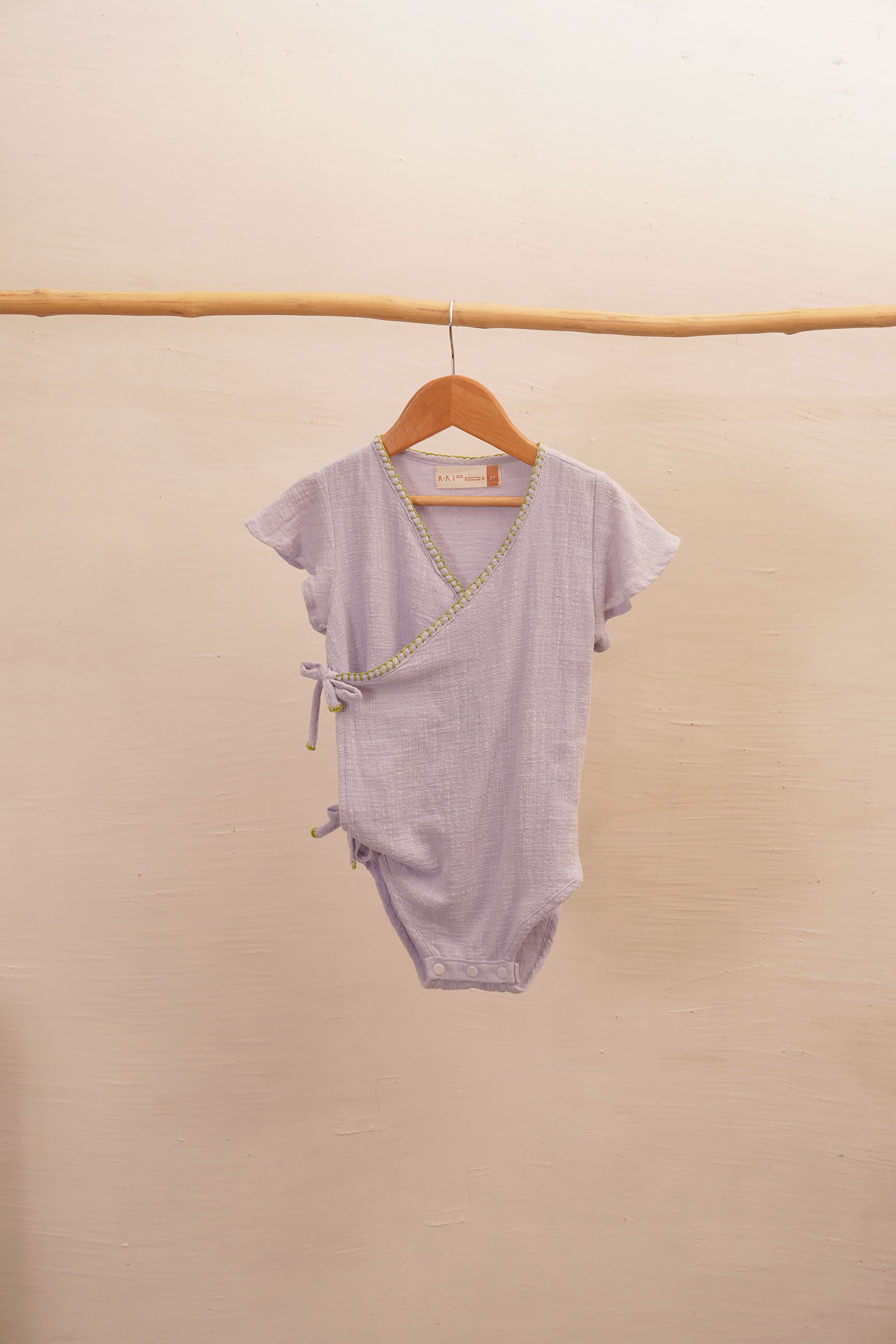 ¡Una caricia de dulzura y tradición para tu bebé! Este encantador kimono, en suave gasa 100% algodón lila, es puro confort. Inspirado en el arte japonés Sashiko, sus bordes en verde bordado le dan un toque único y especial. Ideal para envolver a tu pequeño con amor y estilo, ¡como un dulce sueño!