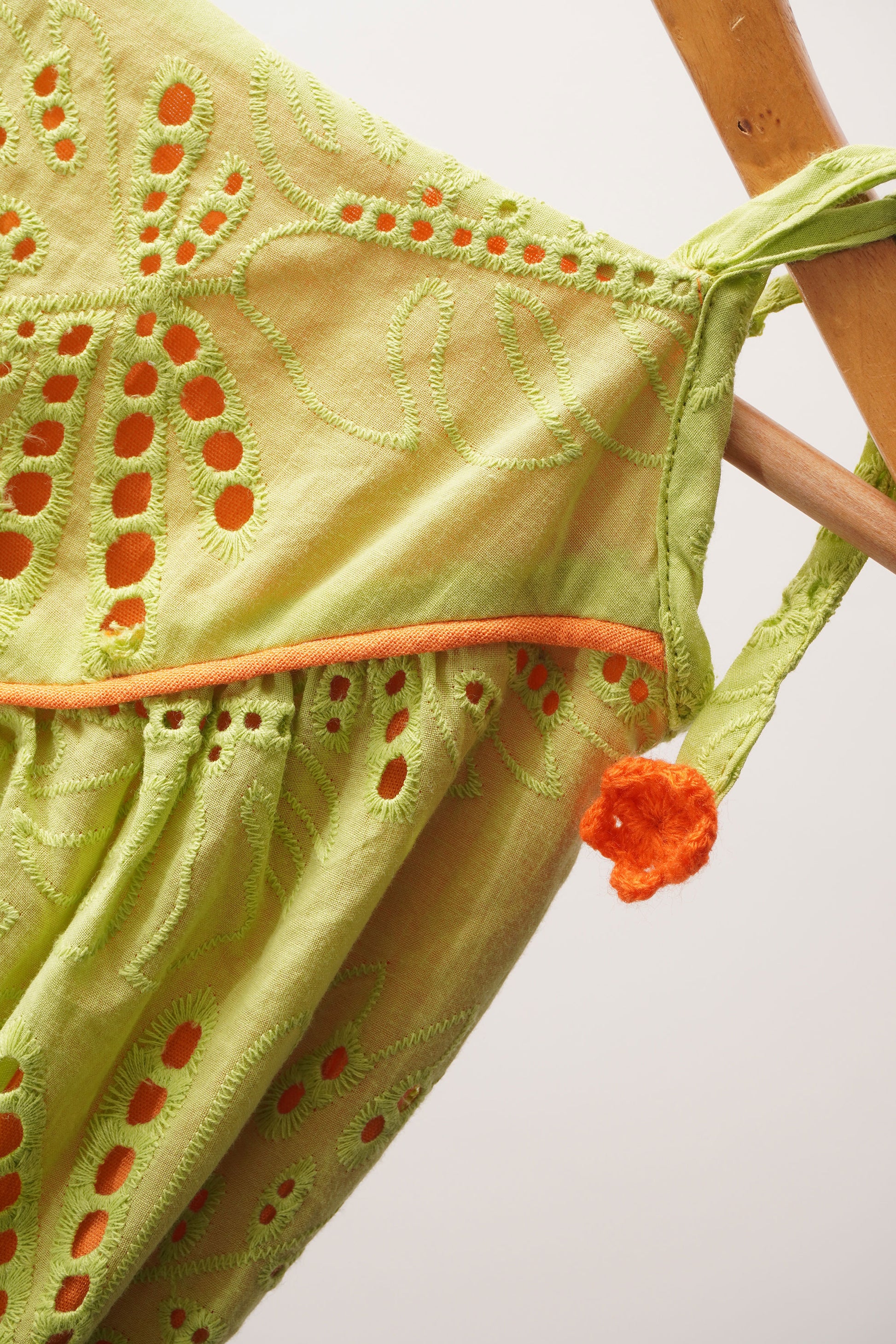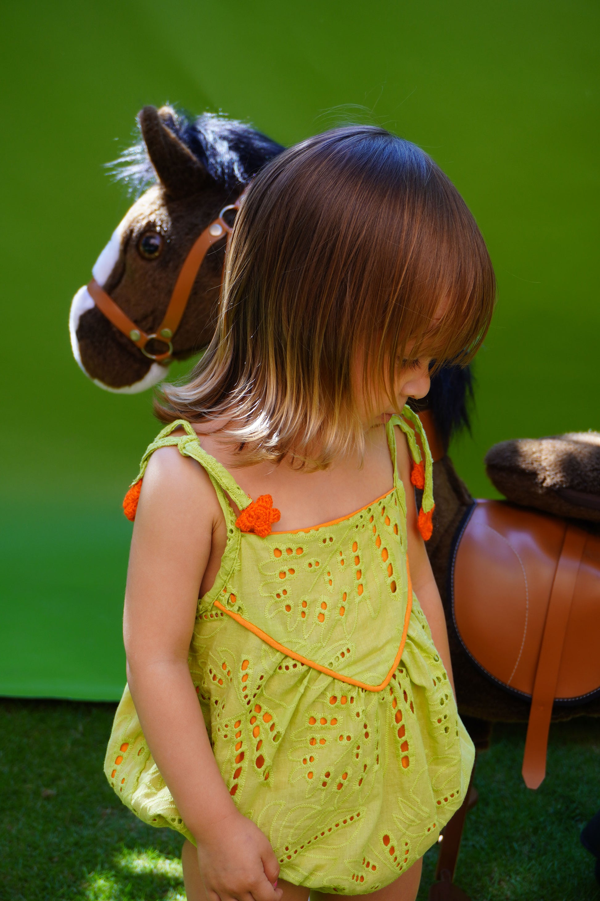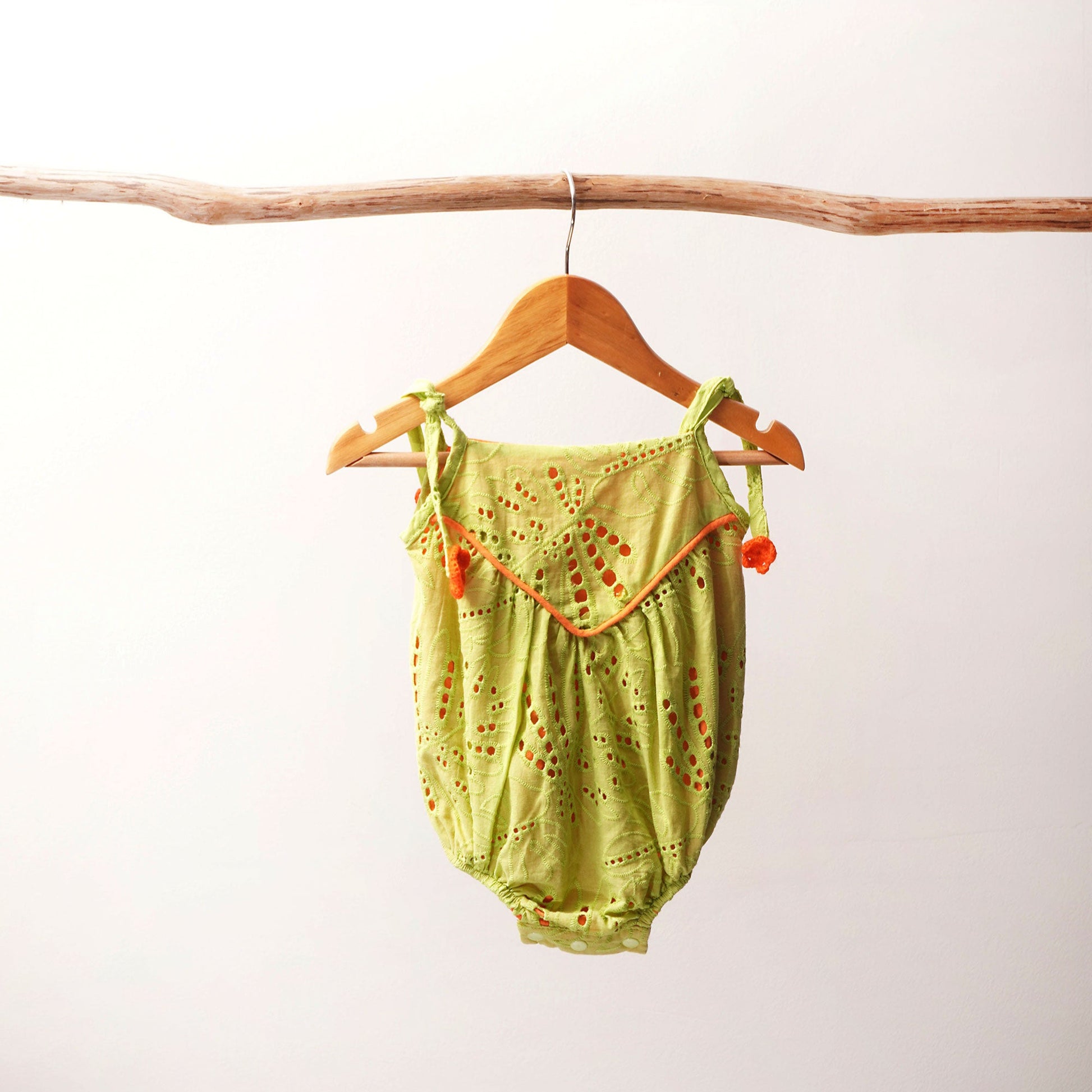 Frescura y movimiento para tu pequeño sol! ☀️ Nuestro mameluco en ojalillo es pura delicadeza, ¡tan ligero y aireado que parece una caricia! Sus dos colores vibrantes verde y naranja lo hacen una prenda única, perfecta para esos días llenos de sol y momentos que brillan. ¡Tu bebé irradiará alegría y un estilo súper especial!
