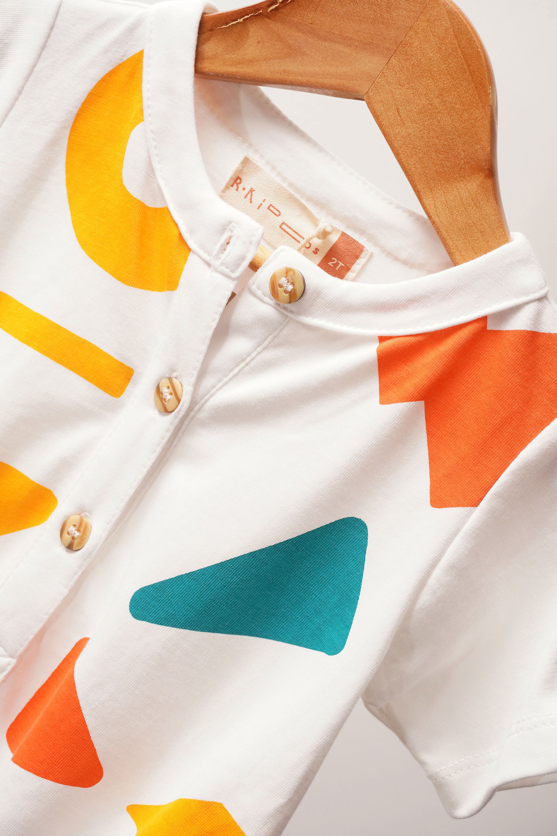 A hug of softness and summer morning freshness for your little sunshine! ☀️ This white cotton romper is pure charm – as practical as it is adorable for their big adventures! Total freedom to move and explore with a colorful and figural print that unleashes joy and creativity, evoking outdoor games and magical moments. Comfort and style in perfect harmony for every day!