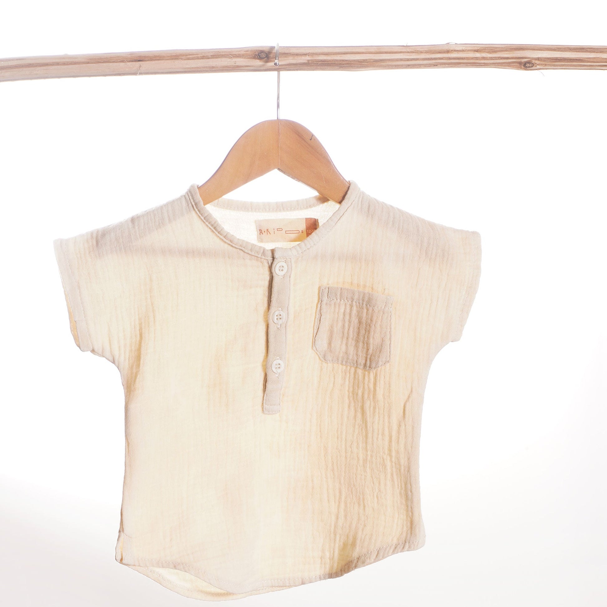 Camiseta 100% algodón con un toque especial: su tintura orgánica de eucalipto le da un hermoso tono beige, fresco y atemporal. ¡Un clásico con encanto natural!