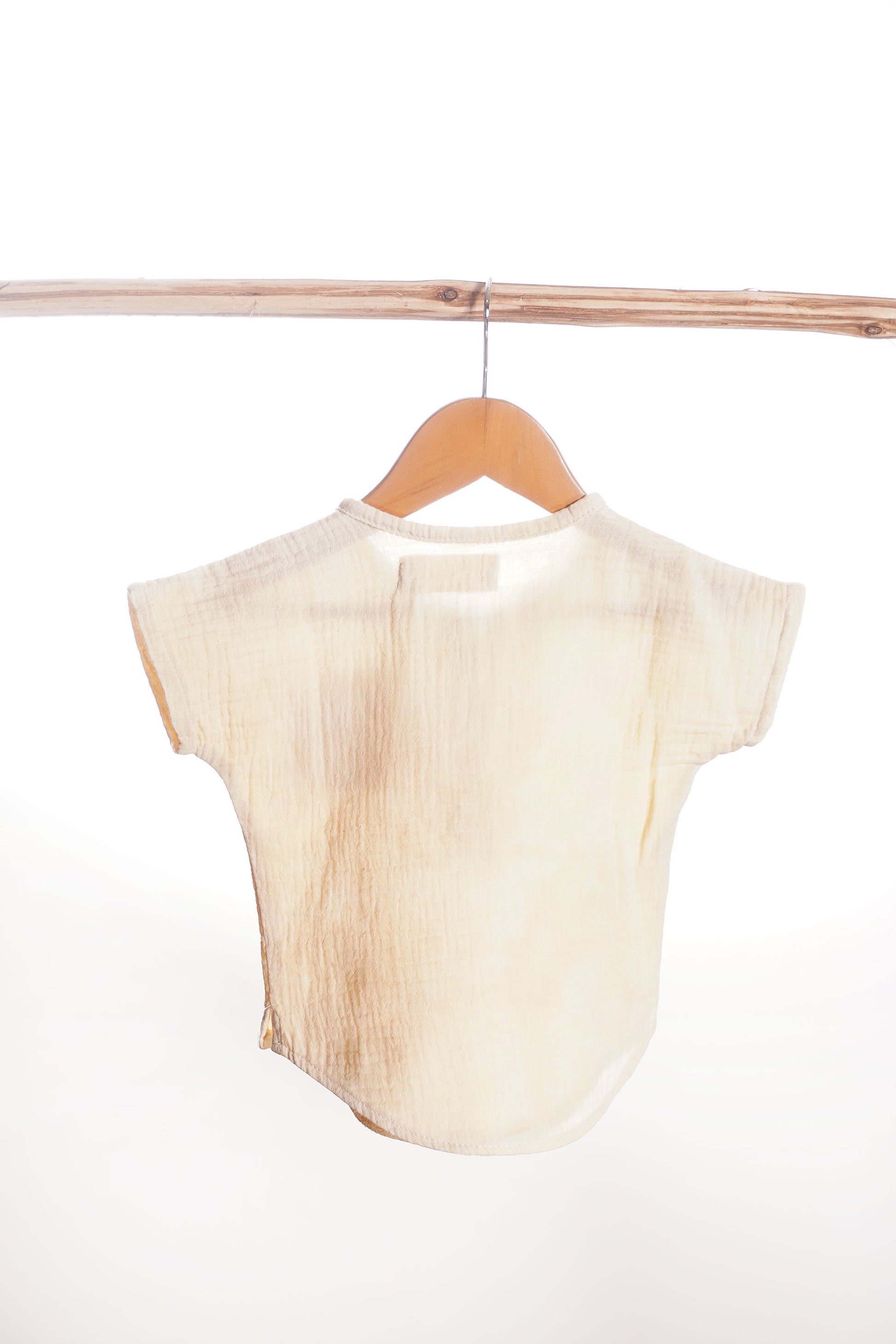 100% cotton tee with a special touch: its organic eucalyptus dye gives it a beautiful, fresh, and timeless beige hue. A classic with natural charm!"