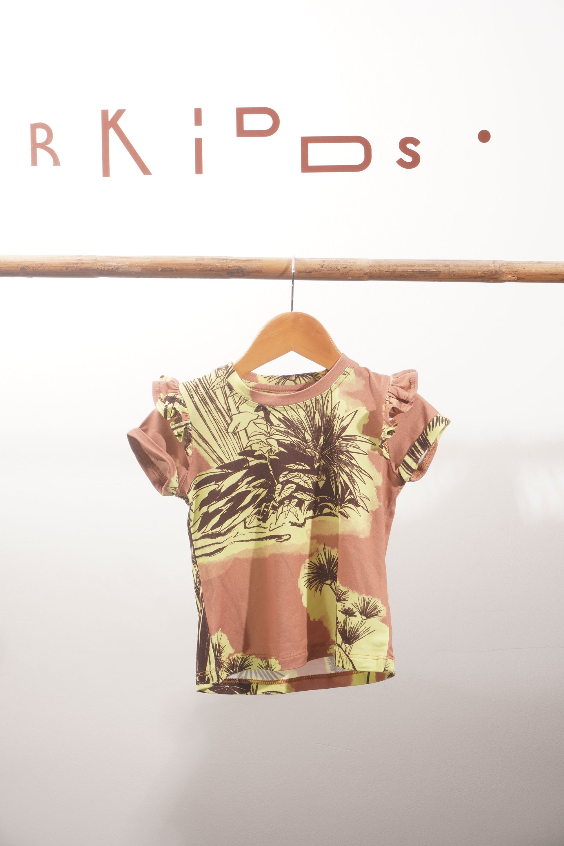 Connect with nature with the "Papyrus" tee! Made from soft recycled PET, this tee is as comfortable as it is sustainable. Inspired by the elegance of the papyrus plant, the exclusive Rkidds print, designed by our team, will transport you to a world of calm and natural beauty. With a creative detail on the shoulders, this tee is a statement of style and environmental awareness.